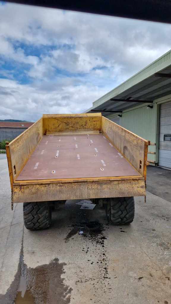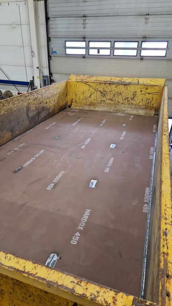 Her har vi utbedret bunn på en gammel dumper-henger med ny Hardox plate for kunde, klar for mange flere år i bruk!